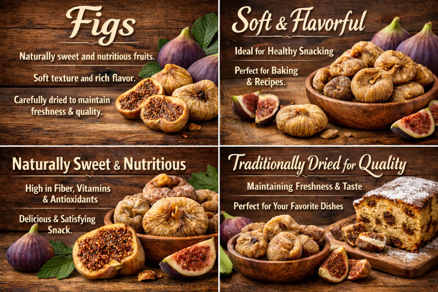 Figs are naturally sweet and nutritious fruits, valued for their soft texture and rich flavor. They are carefully dried and processed to maintain freshness and quality. Ideal for healthy snacking, baking, and traditional recipes.